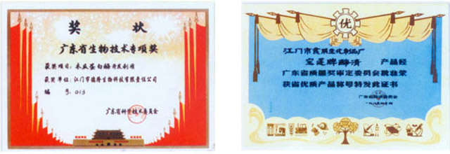 ☆木瓜蛋白酶啤酒添加劑系列產(chǎn)品八八年獲廣東省生物技術(shù)專項(xiàng)獎(jiǎng)